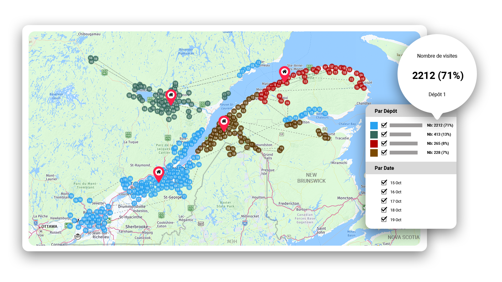 Logix2Go TMS vous propose des outils de géolocalisation à la fine pointe de la technologie. Automatisez sans erreurs jusqu'à 95% de votre correction d'adresse avec une qualité irréprochable. Oui ! il est possible d'offrir une livraison précise même au fond de la campagne. Nos banques d'adresses multi-sources sont même au courant de la plupart des nouvelles constructions !